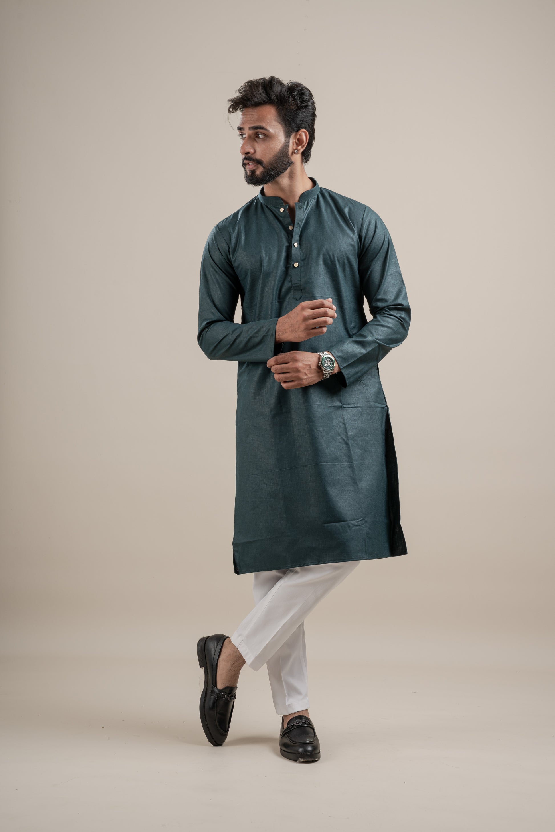 PLAIN DOUBLE MAGIC OLIVE GREEN KURTA